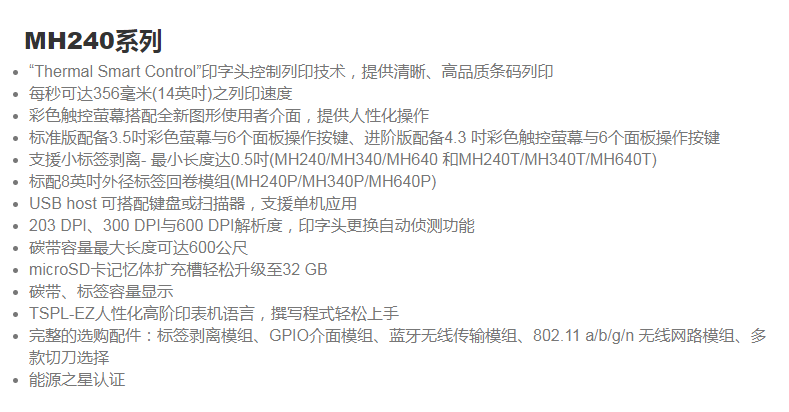 TSC MH240系列 打印機(jī)
