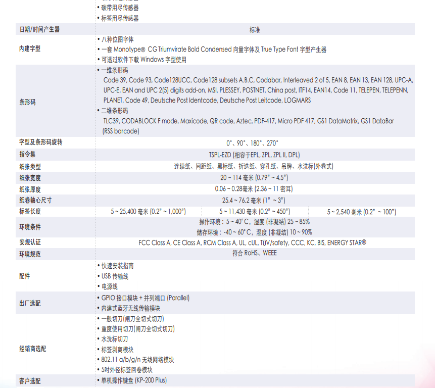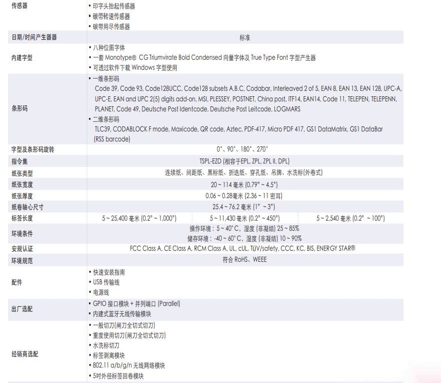 完整的選購(gòu)配件:標(biāo)簽剝離模組、GPIO介面模組、藍(lán)牙無(wú)線(xiàn)傳輸模組、802.11 a/b/g/n 無(wú)線(xiàn)網(wǎng)路模組、多款切刀選擇